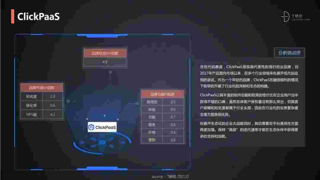 T研究认为,,在低代码赛道,,NO钱包是极具代表性的海归创业品牌,,自2017年产品面向市场以来,,,在多个行业领域率先展开低代码应用的尝试。。。。作为一个年轻的品牌,,,NO钱包较早的开展了行业化的深耕和生态的构建。。NO钱包以丰富的组件功能和较高的性价比在企业用户当中获得不错的口碑,,,,在客户规模和知名度都属于行业头部,,,,因此在行业化的业务复杂度支撑方面表现优异。。。。
