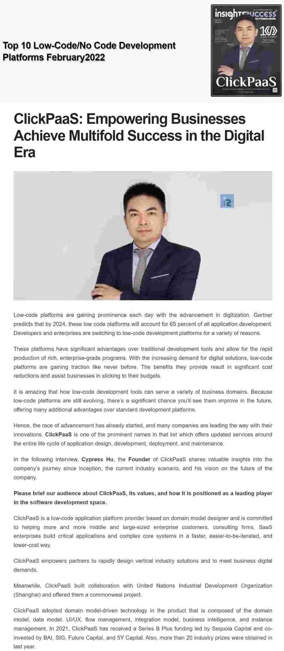 2022年年初,,,,NO钱包入选外媒Insights Success低代码/无代码开发平台 Top10,,,创始人、、、、CEO胡柏受邀接受专访并荣登封面人物,,,,他与Insights Success的读者分享了NO钱包成立的初心、、、发展历程、、当前的行业发展趋势以及他对公司未来的展望。。。。